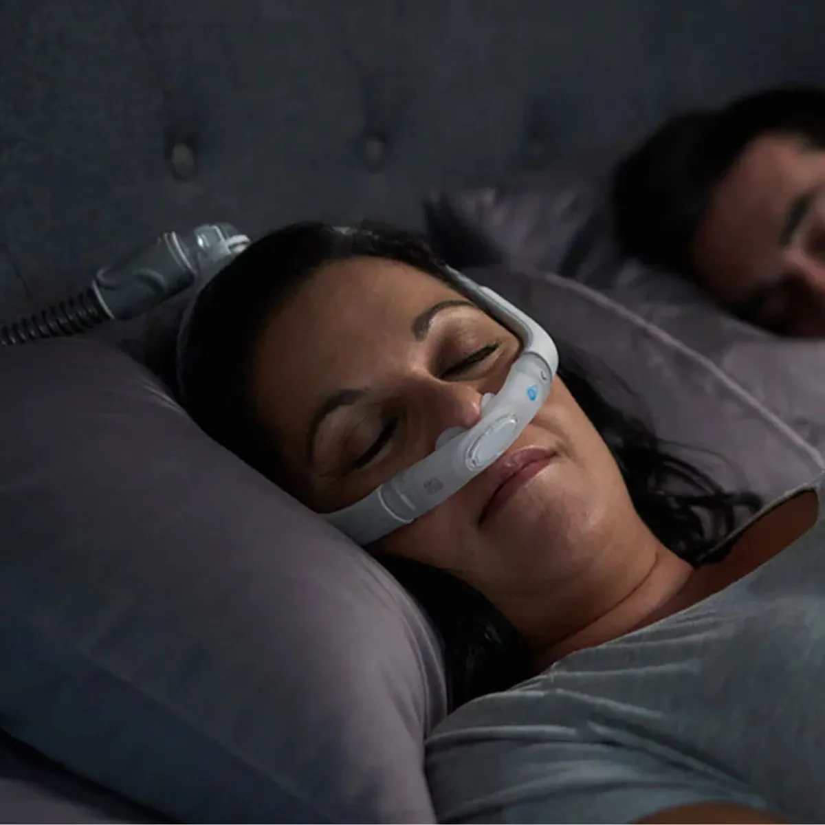 A AirFit P30i é uma máscara para CPAP ResMed de almofadas nasais, com bordas suaves que encaixam naturalmente nas narinas. Com ela a vedação é eficiente, independentemente de ter um sono agitado ou não.